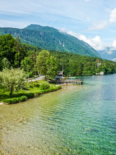 Von Ribčev Laz erstreckt sich der herrlich grünblau schimmernde Bohinj-See vier Kilometer nach Westen. In etwa 3-4 Stunden kannst Du den See zu Fuß umrunden.